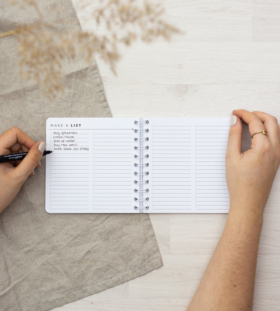 Denne notatboken er laget for deg som vil ha full kontroll over både form og innhold. Med vår personlige notatbok i størrelse Mellom kan du selv velge hvilke 126 sider som passer deg best – alt fra planlegging og loggføring til ro, kreativitet og orden.